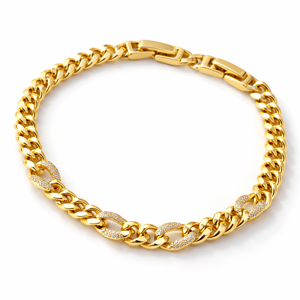 • Cuban link design with pavé accents