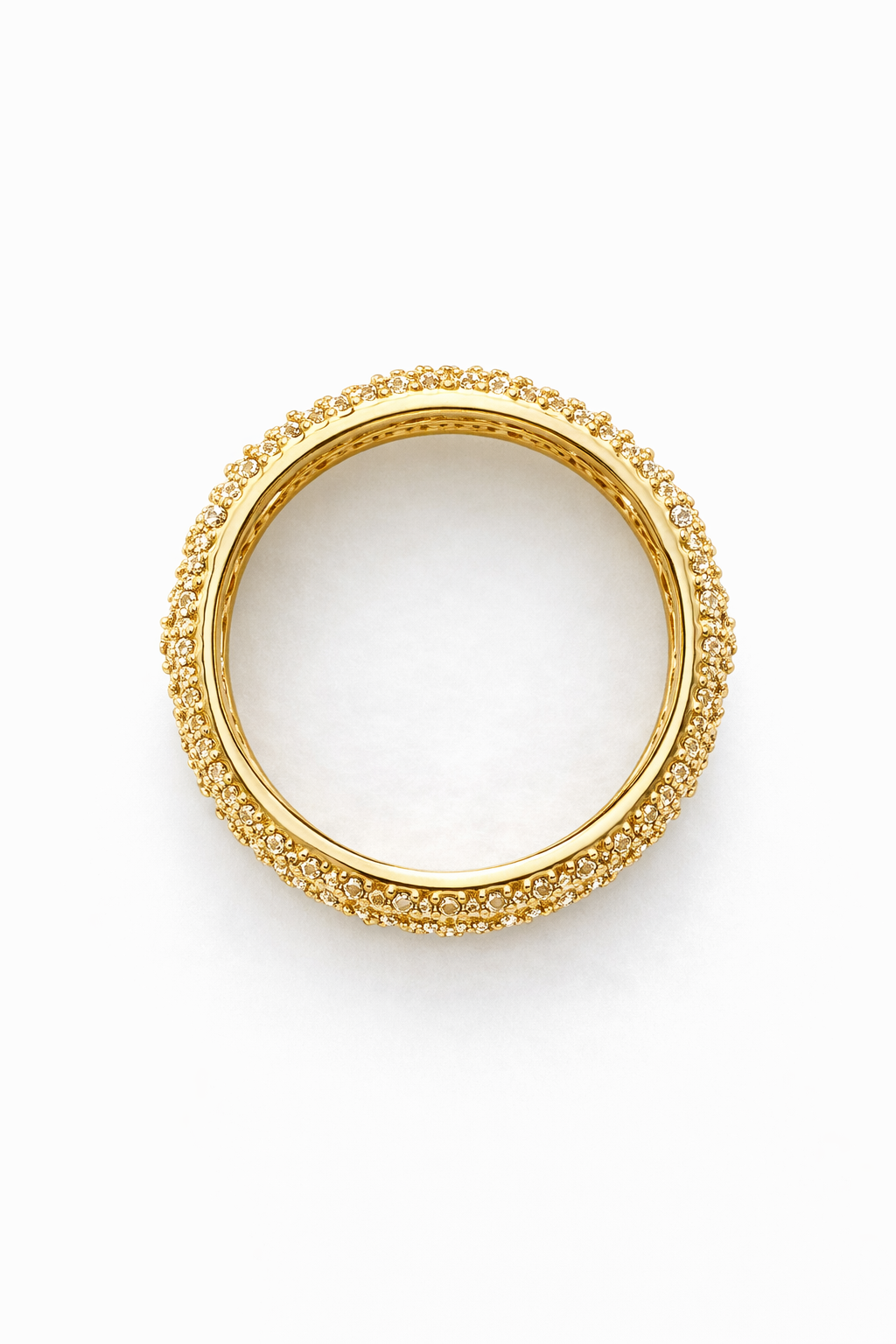 Its eternity-style design delivers continuous sparkle around the band, while the detailed structure reflects fine artisan quality. The balanced 14K tone offers a luxurious gold finish that feels sophisticated — never overly yellow — making it perfect for both everyday elegance and special occasions.