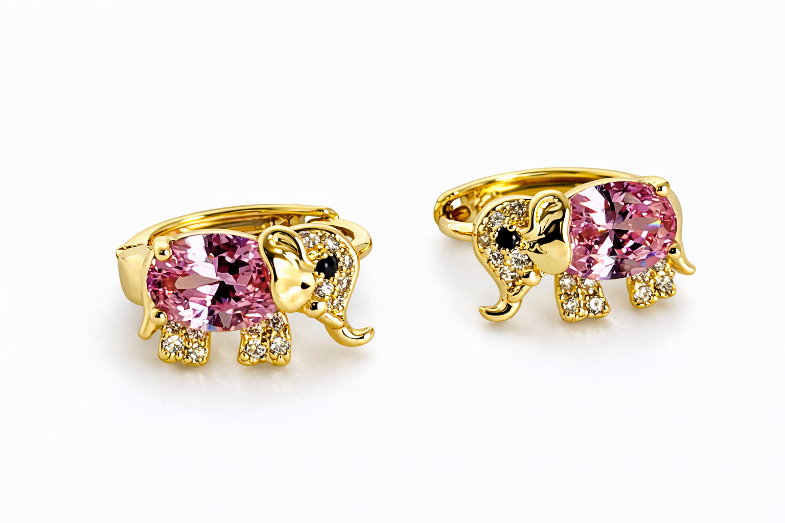 Crafted in premium 14K gold filled, these adorable elephant-shaped earrings feature a brilliant oval-cut crystal body complemented by pavé-set cubic zirconia details on the head and feet. The refined silhouette blends sweetness with sophistication, making them perfect for girls, teens, or anyone who loves delicate luxury pieces.