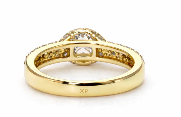 Design: Round halo setting with pavé band
