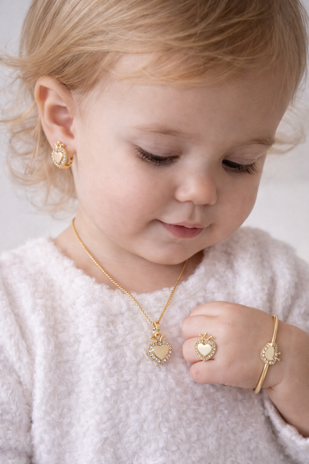 Crafted in 14K gold laminated finish, this set offers a luxurious look while being durable and safe for everyday wear. Perfect for special occasions, birthdays, or as a meaningful gift, this set is designed to make your little princess feel extra special.